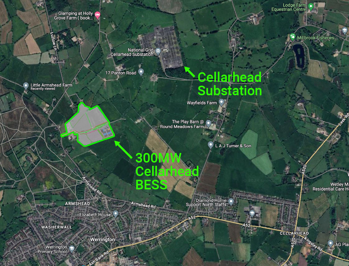 A 300MW battery energy storage system (BESS) is being built at Cellarhead in the West Midlands, UK, and is expected to be completed by 2026. The facility will consist of containerized battery storage units capable of powering up to 690,000 homes for two hours, with typical discharge durations ranging from 30 minutes to four hours and a maximum energy capacity of around 624 megawatt hours.