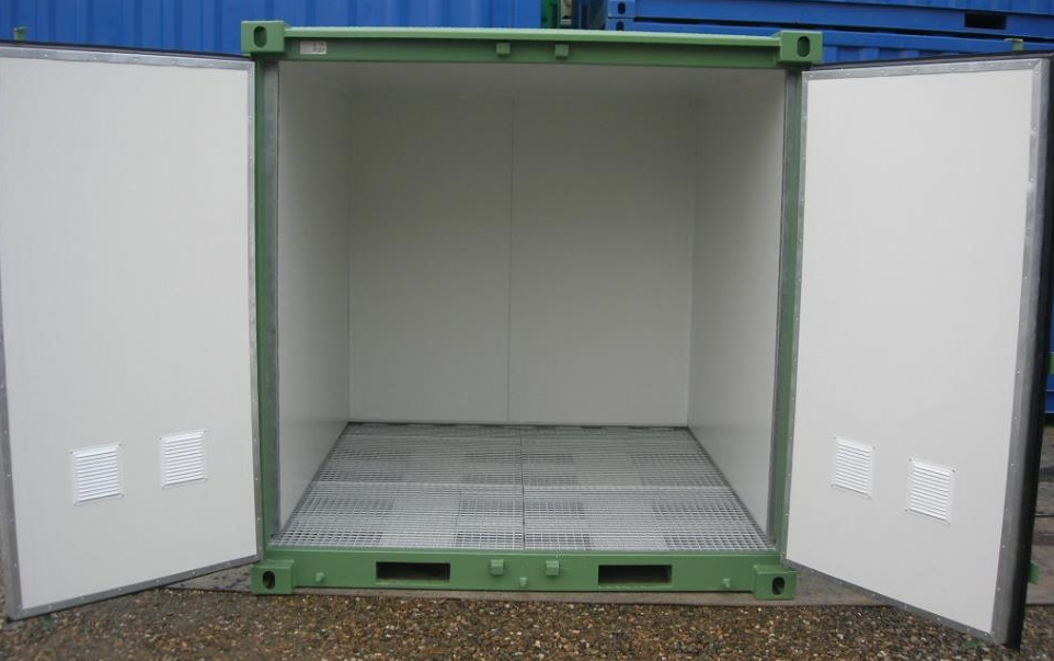 JP Containers chemical stores are constructed from corten steel giving them security and fire resistance. Having the additional benefit of a bunded floor means any spills or leaks within the chemical stores floor will not contaminate the ground beneath. This is achieved by each chemical store either having a raised bund at the front of the container or a sub-floor sump with guttering and drainage tap.