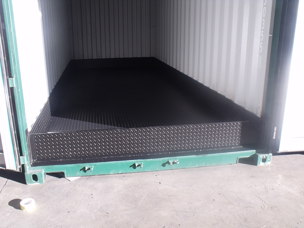 - Anti-slip, anti-spark tread plate bunded floor or sub-floor sump to retain leaks or spillage